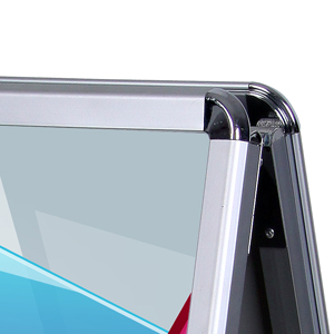 A shape double side snap frame stand with non-glare transparent PVC front film and ACP backing panel. The fastest, easiest way to apply graphics, tool free. Ideal for walk side(indoor&outdoor), bank, business center signs. Customized size acceptable