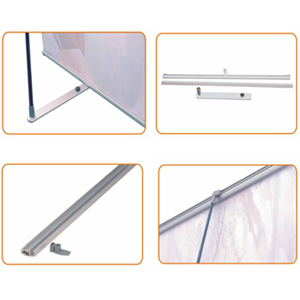 L shape banner stand, sliver aluminum stronger support pole, elegant finish. Perfect for a limited space room, multiple units can be joined together with connectors.