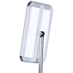 This stand with a chromed heavy round metal base and a strong telescoping pole. a snap-in frame on the top. Ideal for menu, poster, signs….
