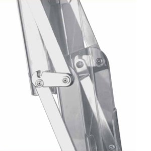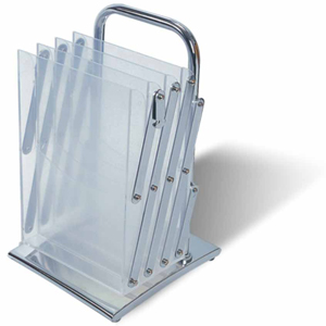 Chromed steel frame and base, clear acrylic pockets. easy to be pull up up and locked in place. Come with a back-pack style oxford bag. 3 or 4 pockets optional