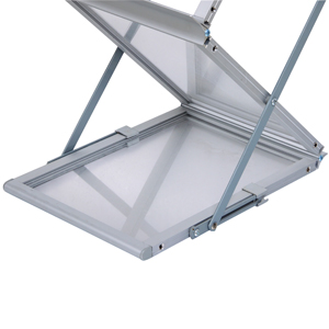 The "Z" Shape brouchour holder provides 2 sides access. Chromed steel and aluminum frame, Acrylic panel. Easy to be pull up and locked in the place. Contained in a padded silver aluminum carrying case