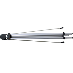 Adjustable height designed X banner stand. Two upper glassfiber arms and three alunimum legs. Light weight but more stable